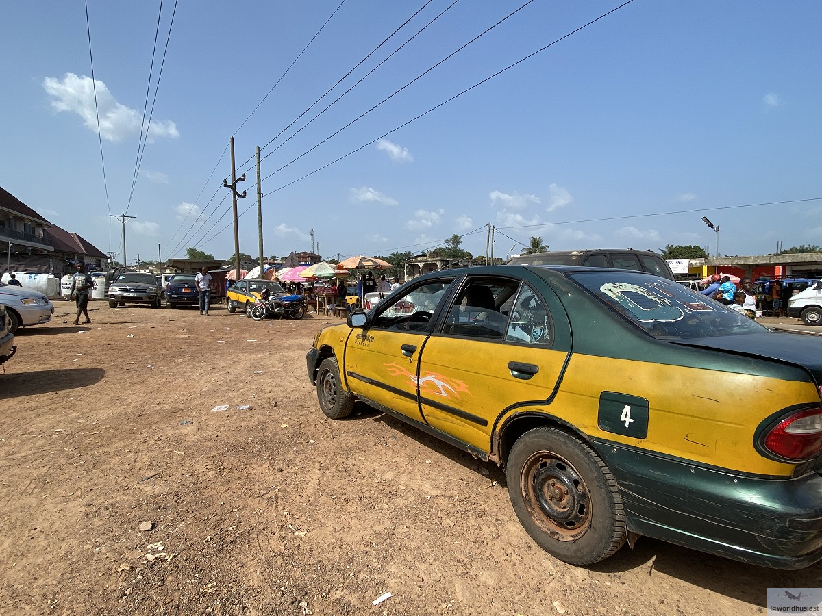 すぐにタクシーでシエラレオネ国境に向かう車が出るDuala Motor Parkに向けて出発しました。ホテル手配のため、料金は1台15米ドル。道の状態が悪いためトゥクトゥクではなくタクシーにした判断は正解でした。