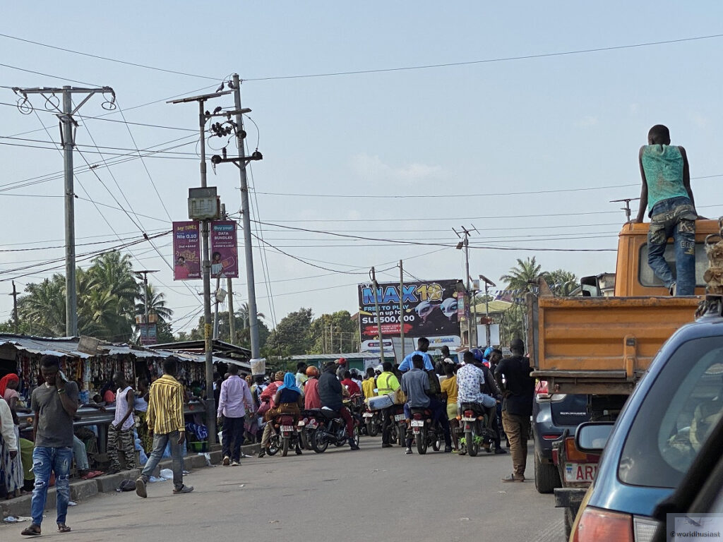 パンクからわずか3分で乗り場到着。フリータウン行きの車は2台止まっていました。バイクの運転手の助言で「良くない」という車を避け、もう一方に乗ることにしました。料金は120レオンでした。