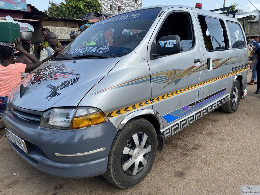客引きがいて一人1,200リベリアドルと言われましたが、乗車すると「国境まで行くのは2人だけだから2,400リベリアドル払え」と言われました。合意前に発車されないように扉をあけて片足を出して聞いていましたが、強いなまりで内容も分かりづらく、トラブルの予感がしたため下車しました。降りた後も客引きは料金について何やらしつこく言ってきます。