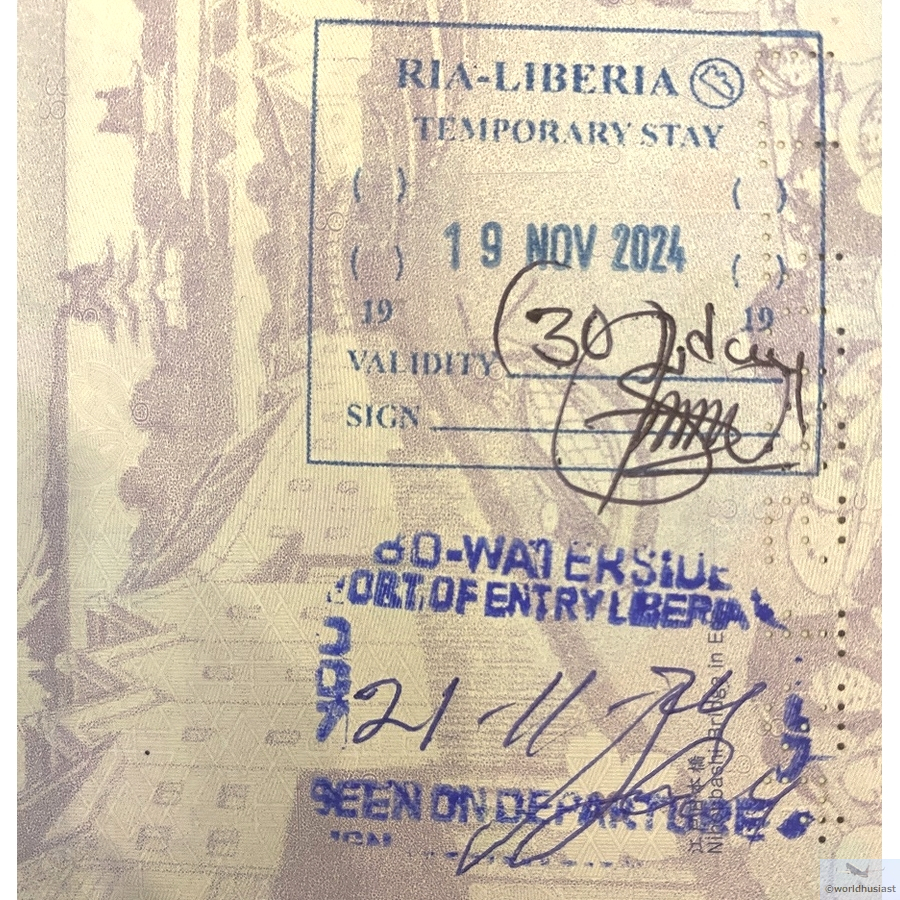リベリア側の出国はスムーズで、職業を聞かれてノートに記録され、スタンプを押されました。奥の部屋では検疫としてイエローカードの確認がありました。さらに橋の手前でもパスポート提出と記録があり、再度職業を聞かれました。